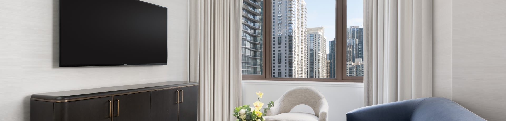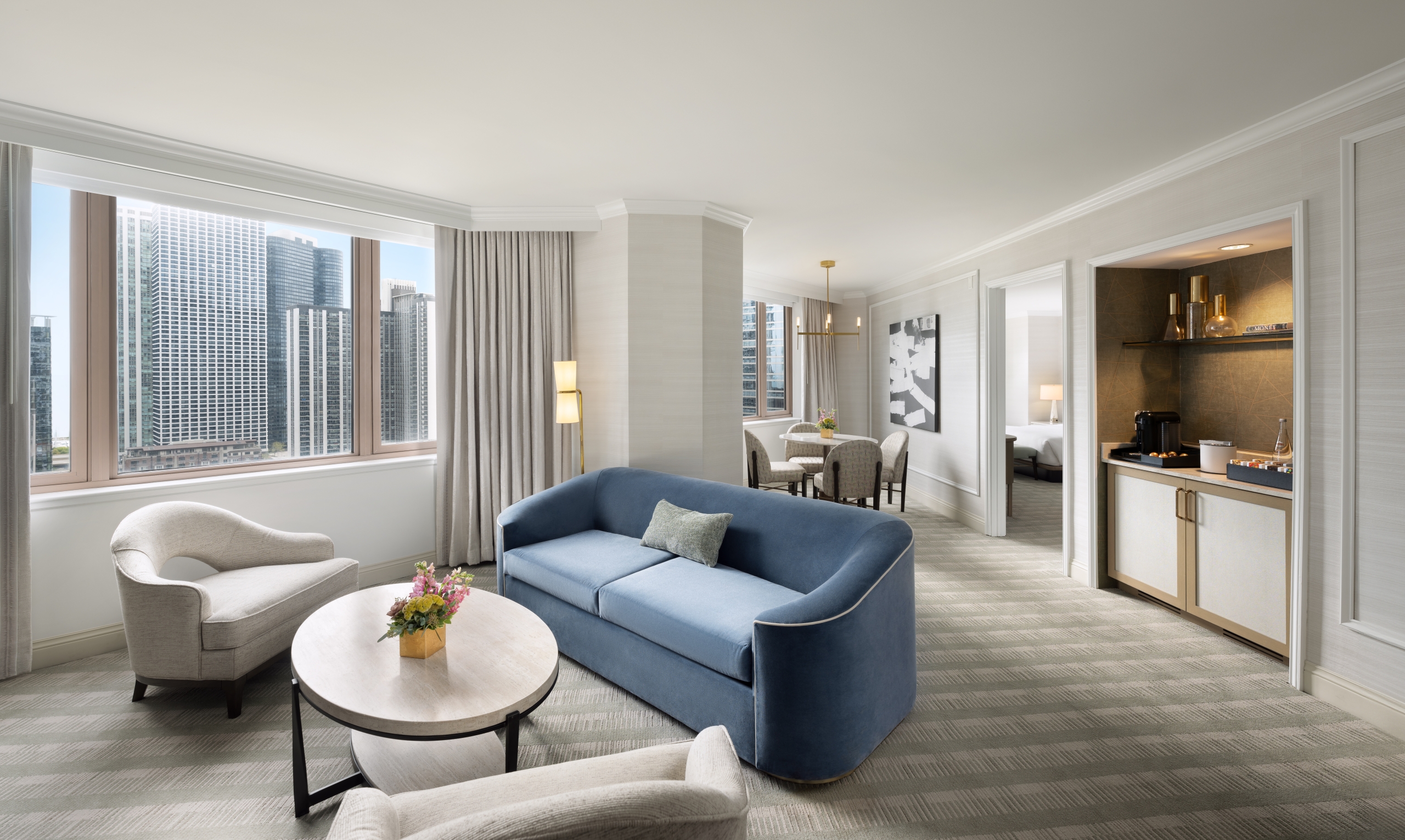 Recently fully transformed and ideal for business or leisure guests alike, each Fairmont Gold Suite offers a contemporary redesign and breathtaking views of some of Chicago’s most iconic landmarks. Rich, warm and inviting, each suite boasts an opulent walk-in shower complete with soothing rainfall style showerhead and a dual bathroom vanity. Make your reservation and discover what “As Good as Gold” truly means.