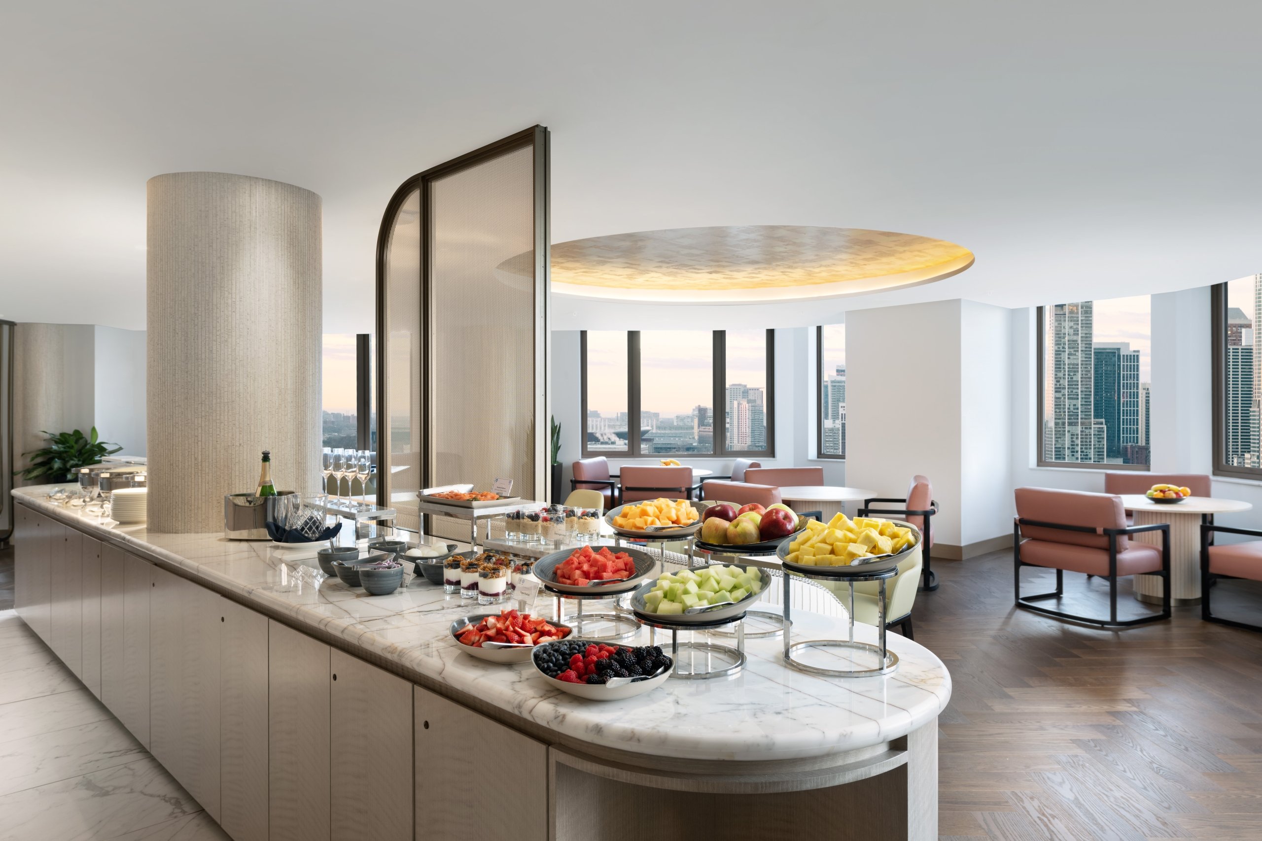 Fairmont Gold guests have access to the exclusive Lounge where breakfast is served daily, as well as all-day refreshments, evening canapés, and desserts accompanied by an honor bar.