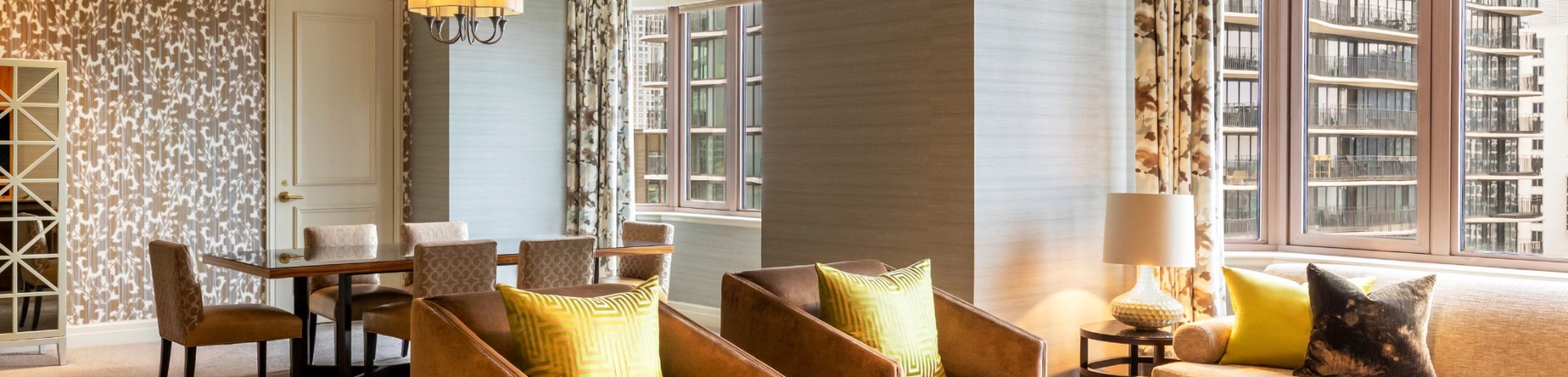 Discover an urban oasis in our Fairmont Grand Suite, ideal for a sophisticated and luxurious city escape. This suite includes Fairmont Gold access.
