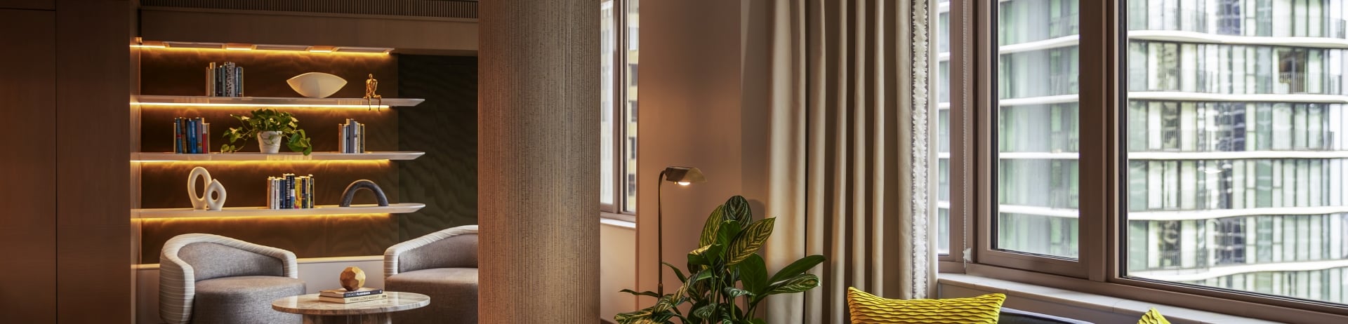 With sweeping views, these light-filled accommodations are perfect for working late with an inspired, tranquil backdrop or a sunset dinner-for-two high above the city sights.
