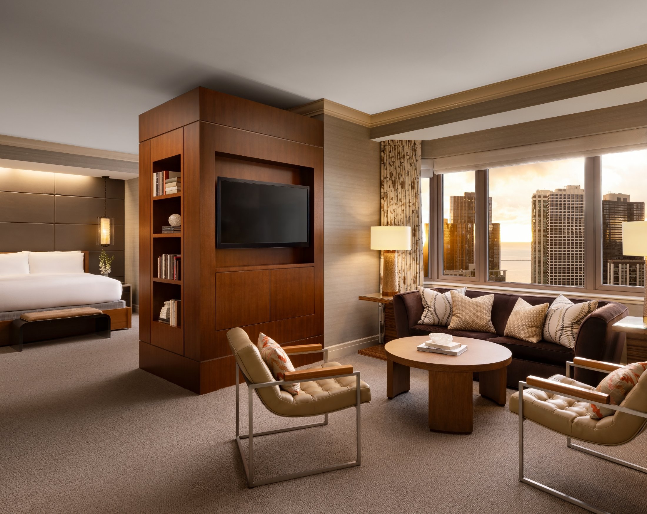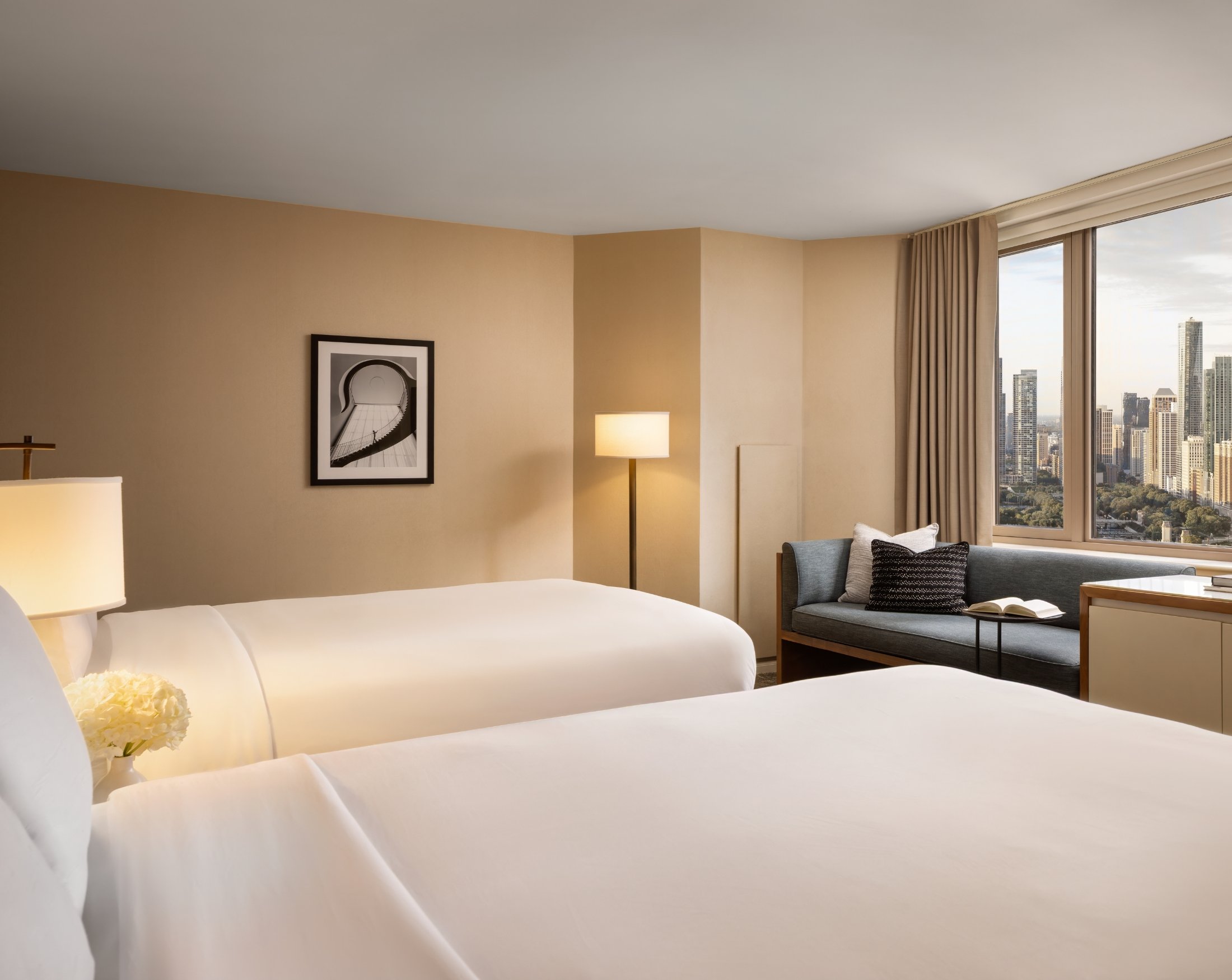 Just as luxurious as our one-bedroom suites with all the same amenities and advantages, these sit on the hotel’s higher floors with even loftier views over Grant & Millennium Park.