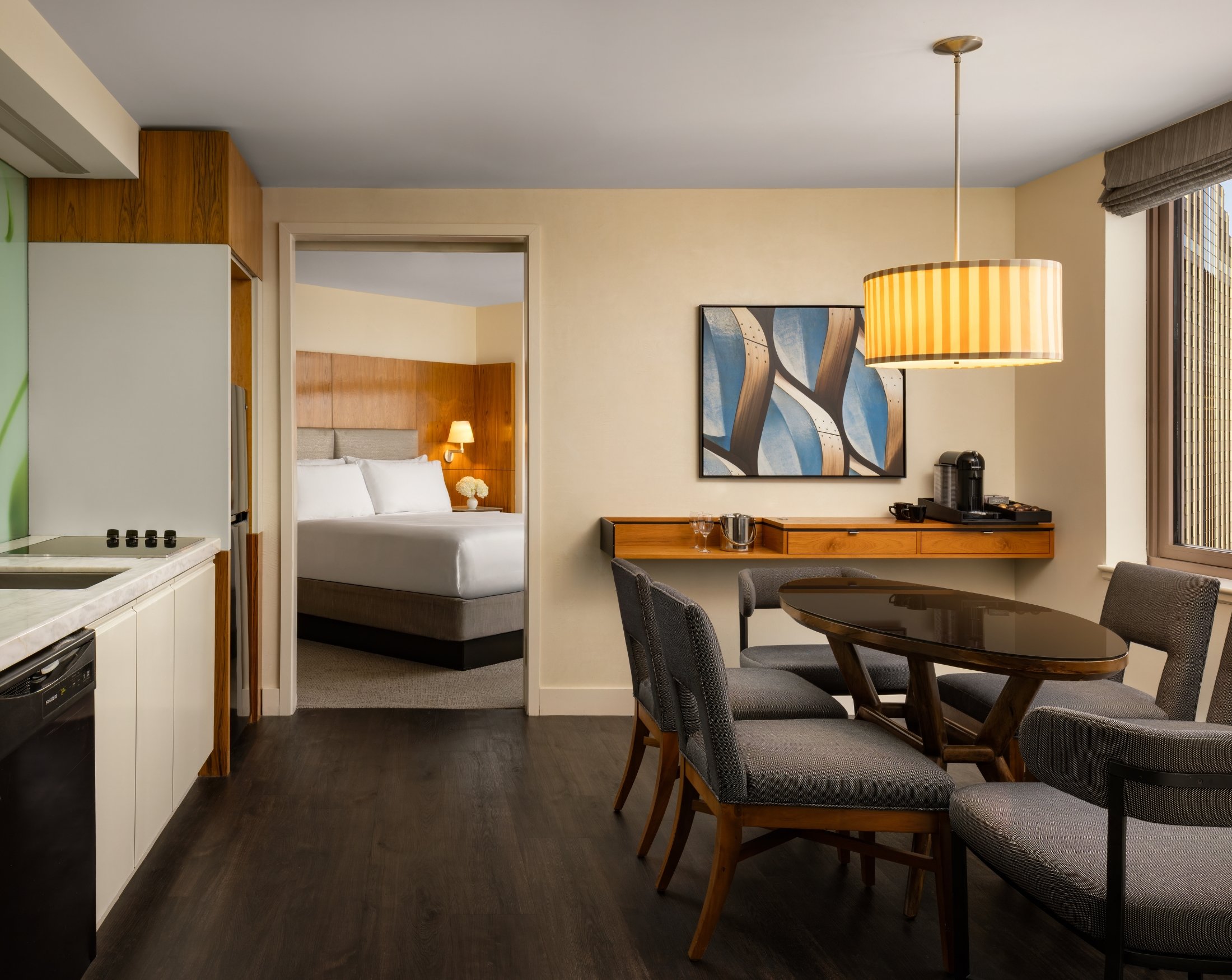 A gentlemen’s club refined. The Lincoln Park Suite features sleek and contemporary appointments with stunning city views of the Chicago skyline.