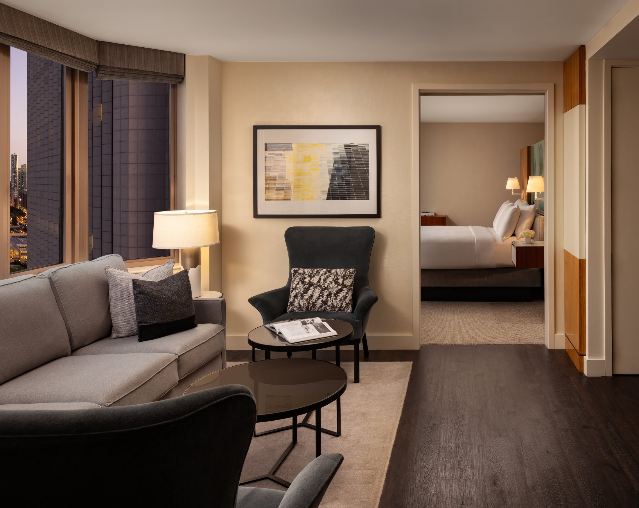 Discover an urban oasis in our Fairmont Grand Suite, ideal for a sophisticated and luxurious city escape. This suite includes Fairmont Gold access.