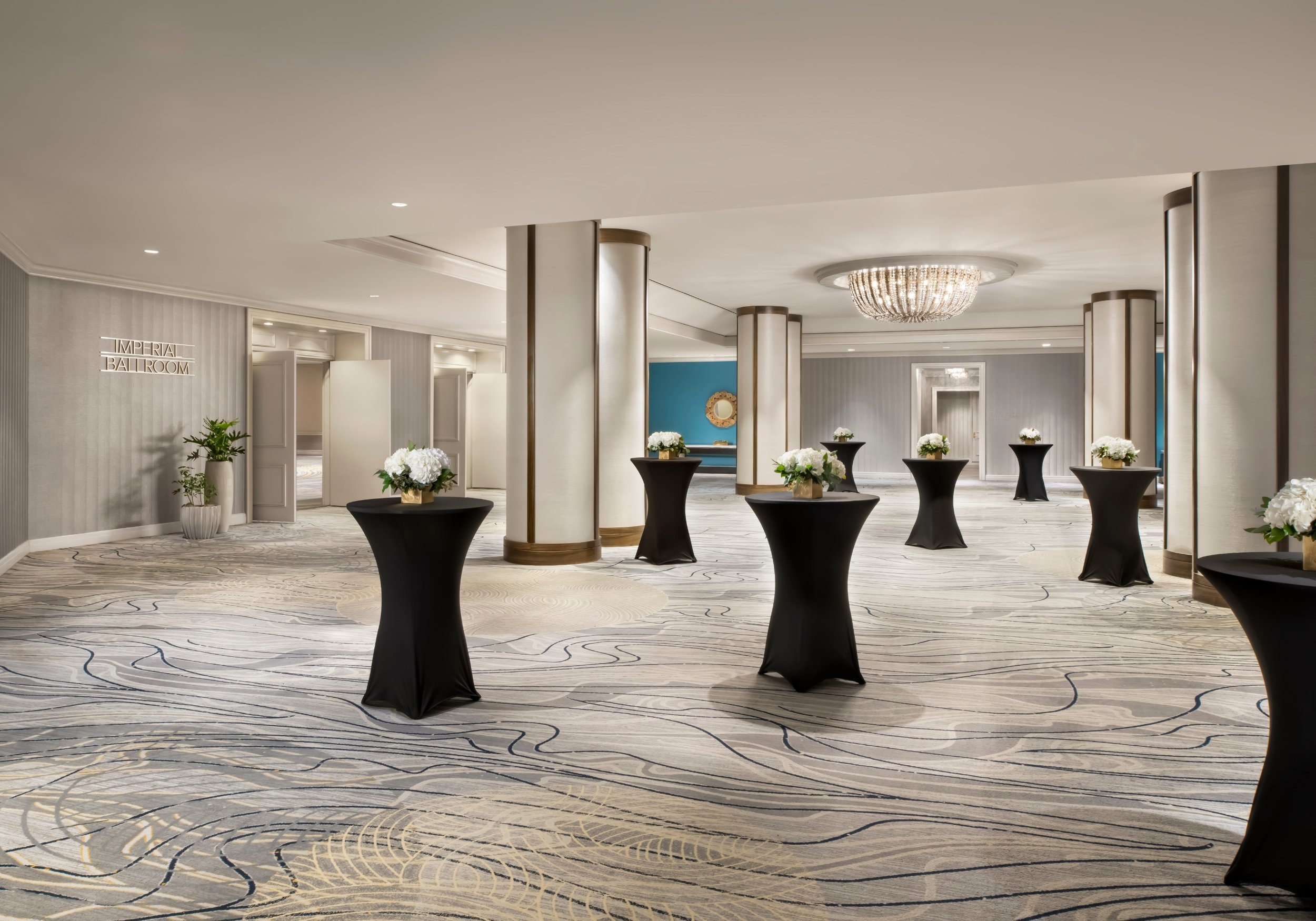 The Imperial Ballroom awaits you on our B2 level with 16,100 square feet of sapphire, basil and amber, unobstructed meeting space, five crystal chandeliers, wall sconces, 4,700 square feet of pre-function space and a built-in state-of-the-art audio-visual booth.